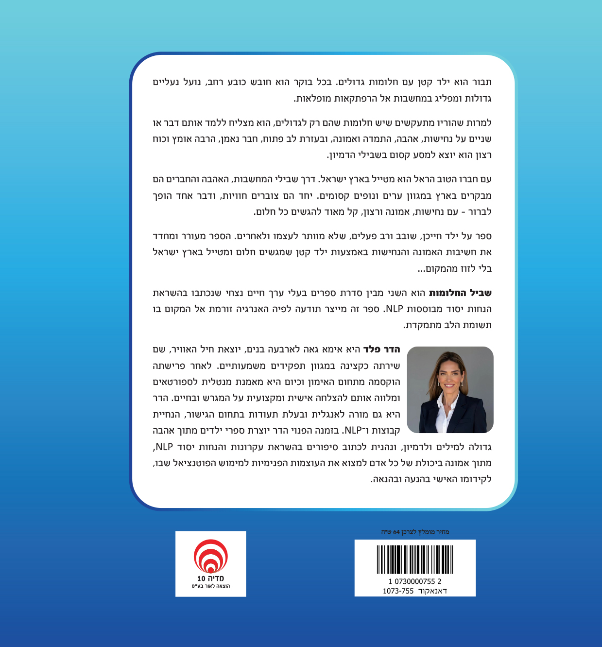 הדר פלד היא אימא גאה לארבעה בנים, יוצאת חיל האוויר, שם שירתה כקצינה במגוון תפקידים משמעותיים. לאחר פרישתה הוקסמה מתחום האימון וכיום היא מאמנת מנטלית לספורטאים ומלווה אותם להצלחה אישית ומקצועית על המגרש ובחיים. הדר היא גם מורה לאנגלית ובעלת תעודות בתחום הגישור, הנחיית קבוצות ו־NLP. בזמנה הפנוי הדר יוצרת ספרי ילדים מתוך אהבה גדולה למילים ולדמיון, ונהנית לכתוב סיפורים בהשראת עקרונות והנחות יסוד NLP, מתוך אמונה ביכולת של כל אדם למצוא את העוצמות הפנימיות למימוש הפוטנציאל שבו, לקידומו האישי בהנעה ובהנאה.
