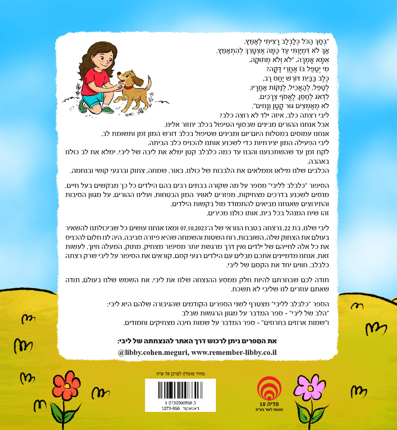 ליבי שלנו, בת 22, נרצחה בטבח הנוראי של ה־07.10.2023 ומאז אנחנו עושים כל שביכולתנו להשאיר בעולם את הצחוק שלה, השובבות, רוח השטות והשמחה שהיא פיזרה סביבה. היה לנו חלום להכניס את כל אלה לחייהם של ילדים ואין דרך מרגשת יותר מסיפור מצחיק, מתוק, המעלה חיוך, לעשות זאת. אנחנו מדמיינים אתכם מבלים עם הילדים רגעי קסם, קוראים את הסיפור על ליבי שרק רצתה כלבלב. חווים יחד את הקסם של ליבי.