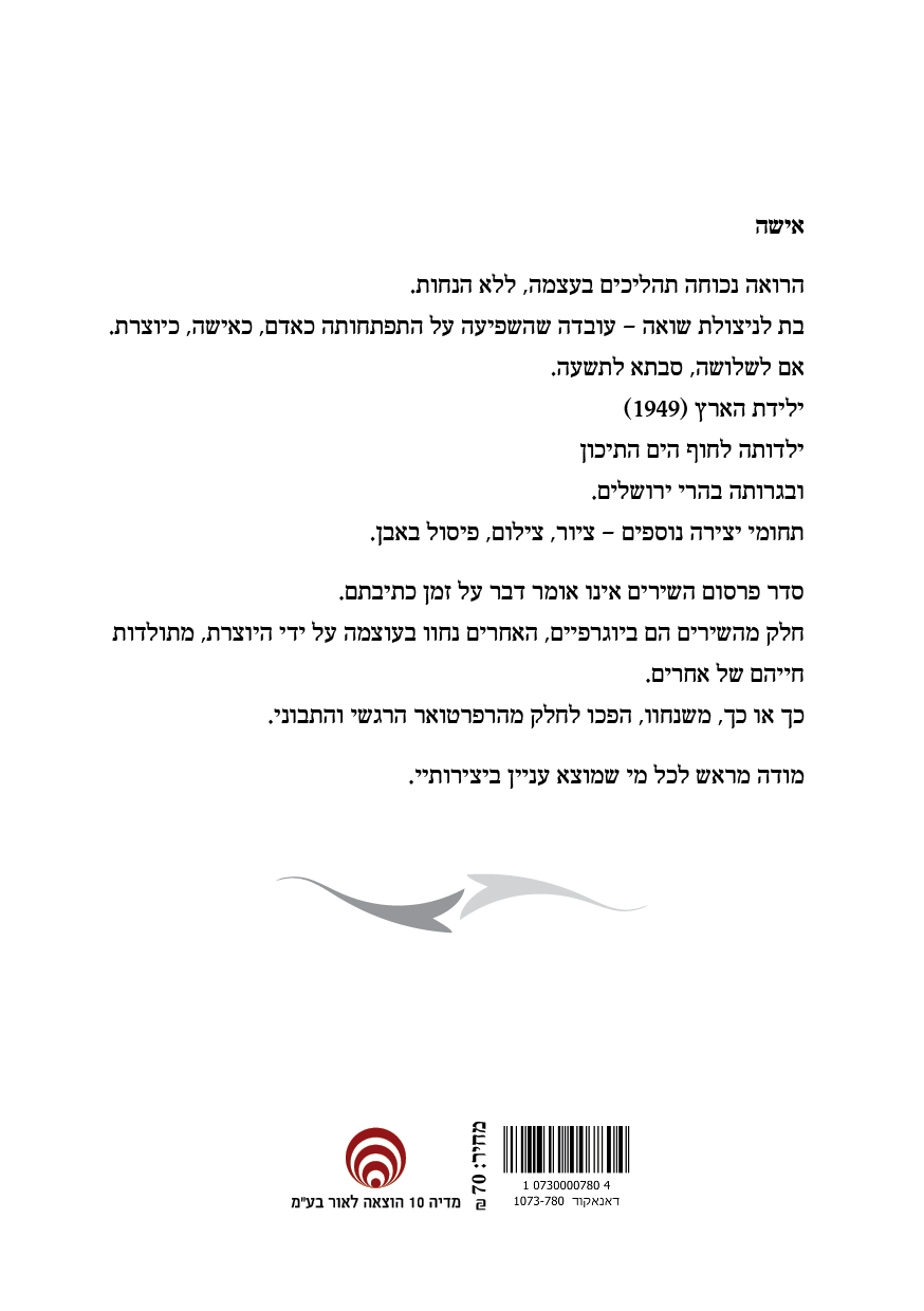 תודה מיוחדת לדורון קריספין — אתה מלאך מיוחד במינו ברשת הענקית הזו. אתה אכן מוציא לאור לא רק את הספר אלא גם אותי. ליווית אותי ברגעים של מבוכה וקושי, של דמעות וחיוך, של מחסור ושל שפע עתידי.
